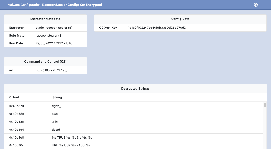 This week we have added malware configuration extractors for Raccoon Stealer, and Redline Stealer.