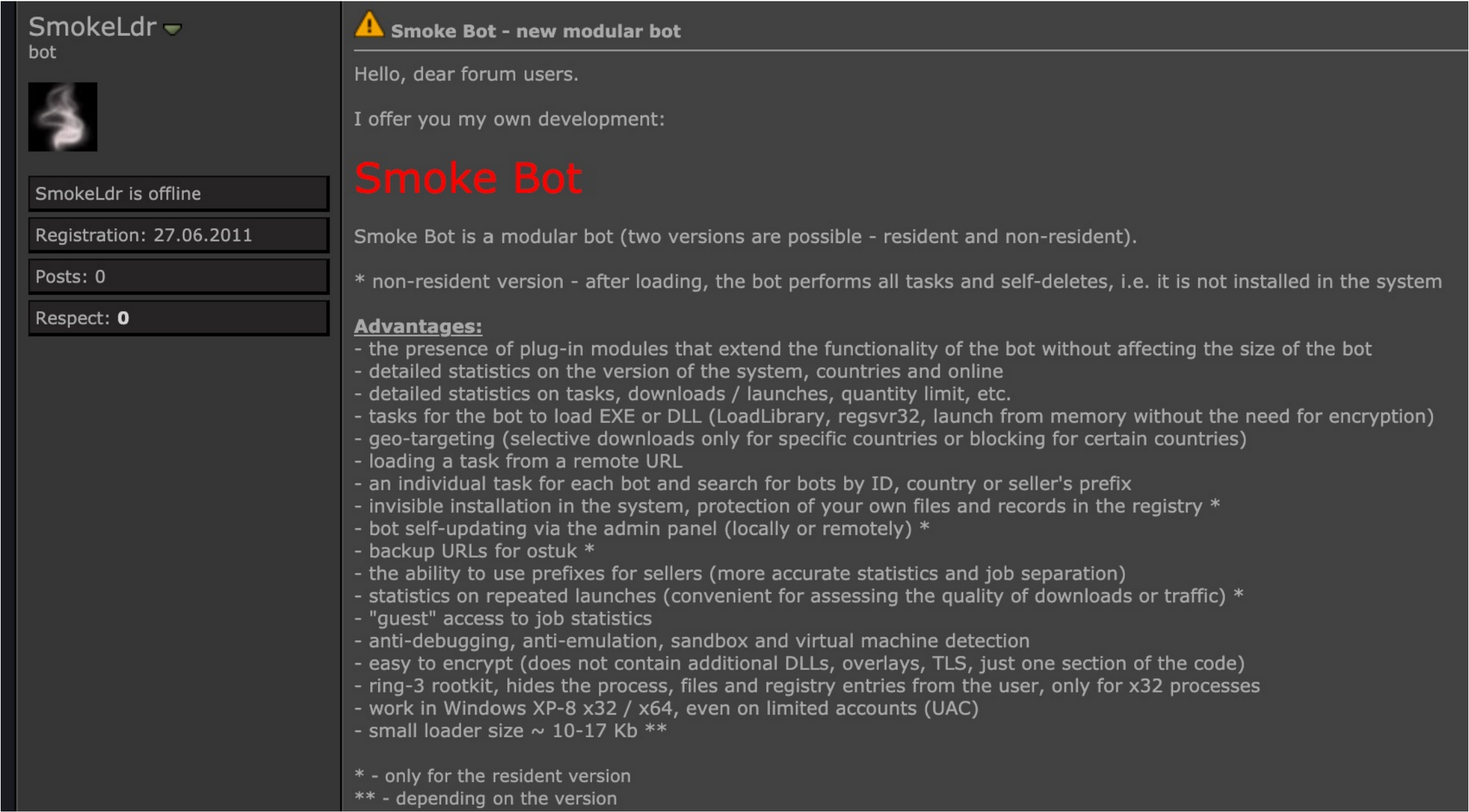 SmokeLoader which has been operating a malware delivery service since 2011.