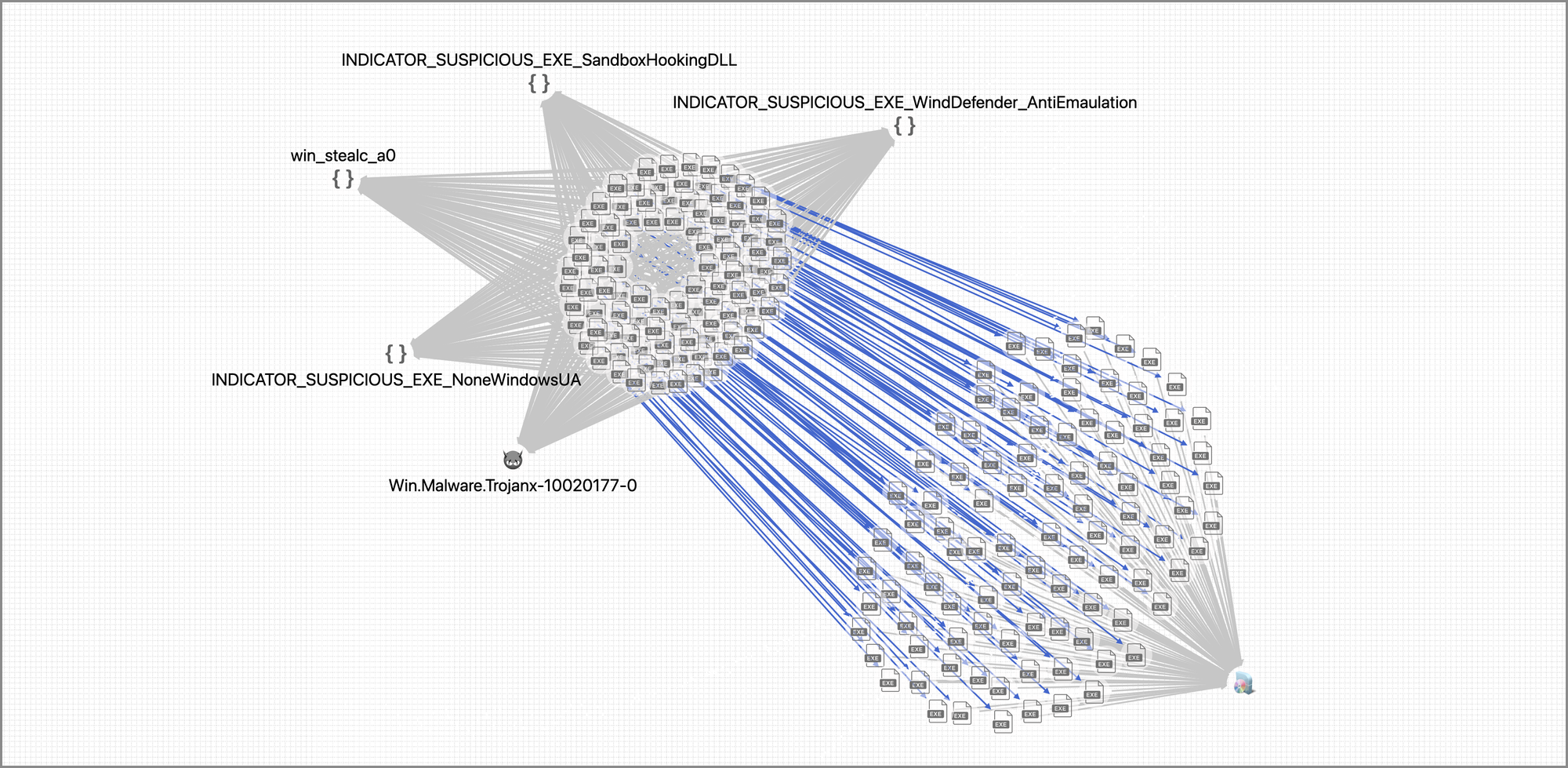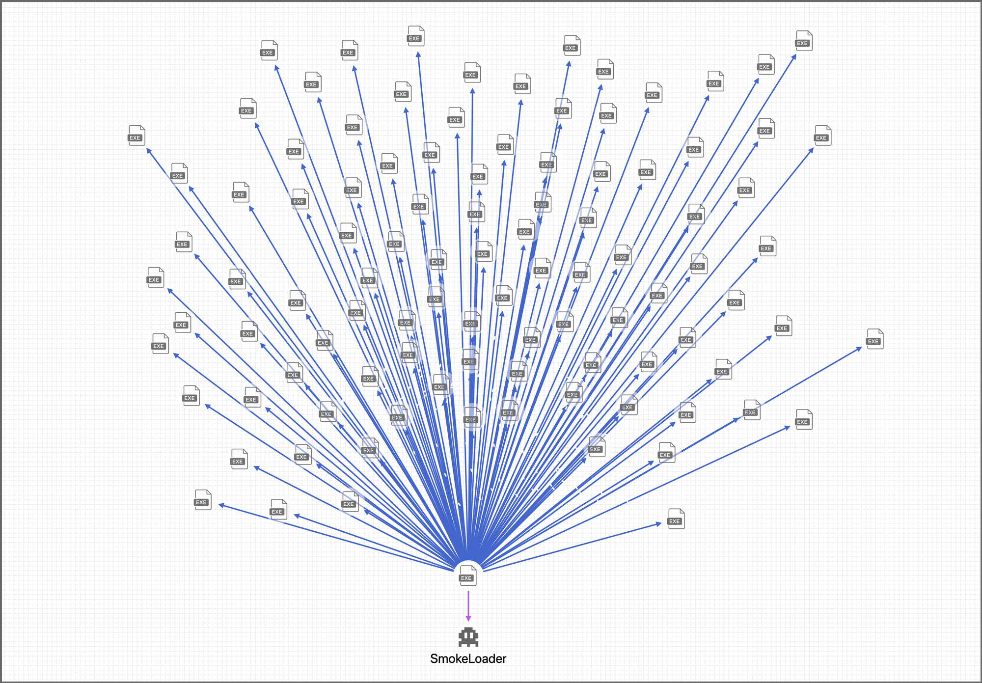 PIVOT adds important visual context while analyzing malware. For example, we often hear about the millions of "new" malware samples being produced daily. However with PIVOT we can see that this single SmokeLoader sample was repacked at least 5,000 times over the course of a year.