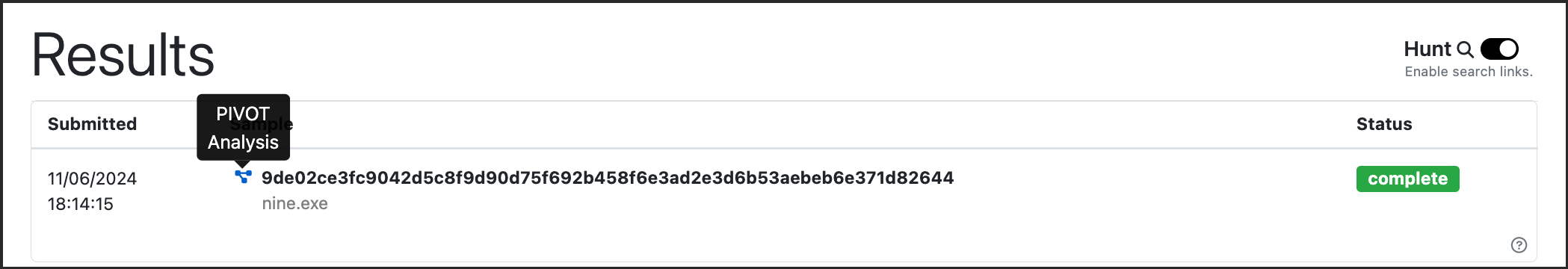 Starting a graph search is as easy as clicking on one of the many PIVOT links available in the UnpacMe interface.