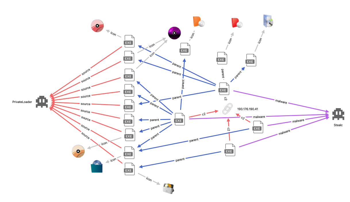 Using UnpacMe Pivot to analyze a cluster of Stealc samples configured with the Command-and-Control (C2) 193.176.190[.]41, reveals repacked samples that are being primarily distributed via PrivateLoader, thanks to loader tracking provided by LIA.