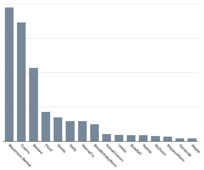 - .NET executables continued to gain in popularity amongst malware developers with many new "families" being simple forks of existing .NET malware variants.
