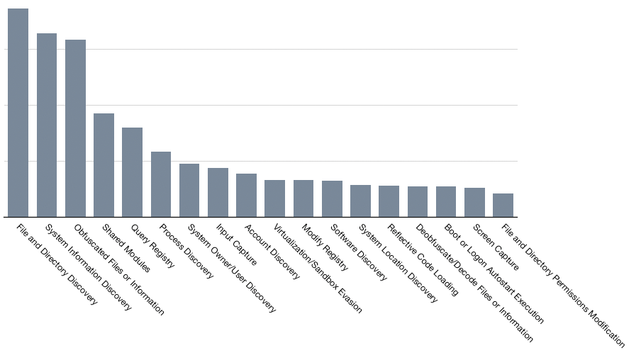 As with last year, many of the most commonly observed techniques rely on OS and other legitimate functionality. Logging, event analysis, and proactive anomaly detection remain effective ways to identify these techniques. Specifically, monitoring Command Execution (DS00017), OS API Execution and Process Creation (DS0009), Windows Registry (DS0024), and Application Logs (DS0015).